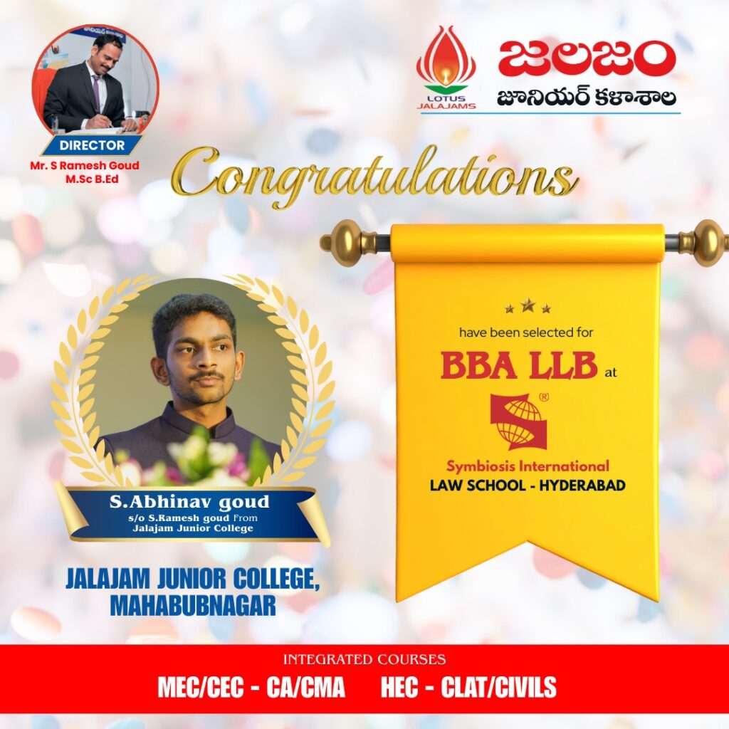 Jalajam Junior College Student Abhinav Goud Selected for BBA LL.B at Symbiosis International Law School